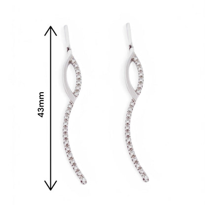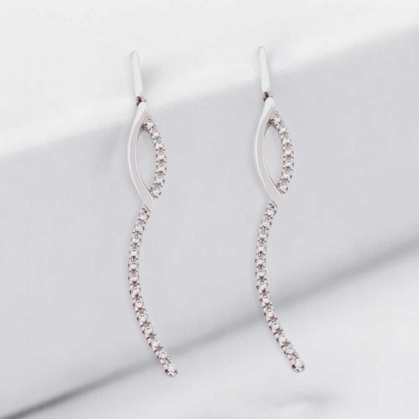 Pendientes largos de oro blanco de 18kt y 20 diamantes a lo largo de cada pendiente. Cierre a presión. Unos pendientes muy elegantes que combinan perfectamente con los vestidos de novia.